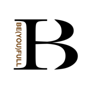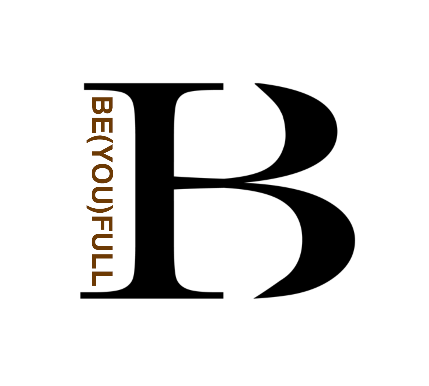 Black-and-white portrait of a woman holding a vibrant BE(YOU)FULL campaign poster. The design features multicoloured text in a radial pattern, symbolising diversity, self-expression, and collective impact.